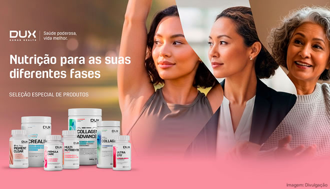 A linha de suplementos da DUX Human Health foi desenvolvida para promover o bem-estar feminino em todas as fases, com produtos que apoiam o equilíbrio físico e emocional. Entre os destaques está o Multinutrientes Mulher, que reúne 26 nutrientes essenciais, como ômega-3, luteína FloraGLO e zeaxantina, auxiliando na energia, vitalidade e equilíbrio hormonal.